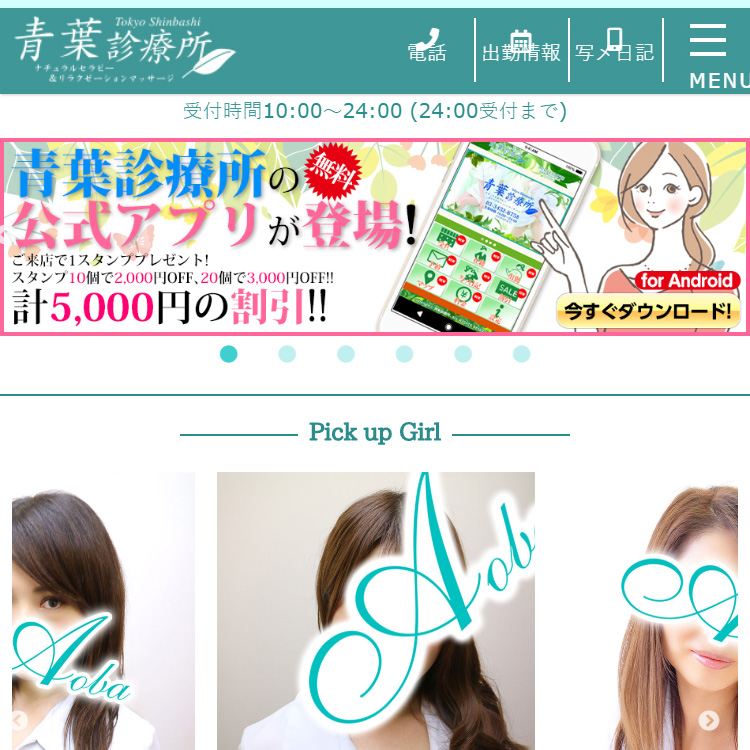- ご安心ください。当青葉診療所のエステシャンが一からていねいにマッサージを指導してくれます。今お店に在籍している女の子たちもほとんどがマッサージ未経験でしたが、今は立派に技術を習得し、面接当初の目標金額以上に稼いでいます。